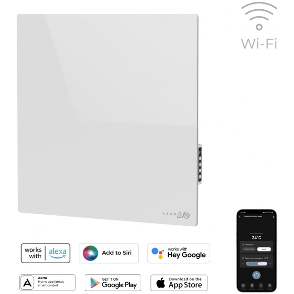 Pateicoties Wi-Fi savienojumam, ierīci var vadīt ar AENO Smart lietotni, balss vadību vai manuāli. Iebūvētais termostats, taimeris un enerģijas patēriņa uzskaite palīdz samazināt apkures izmaksas.